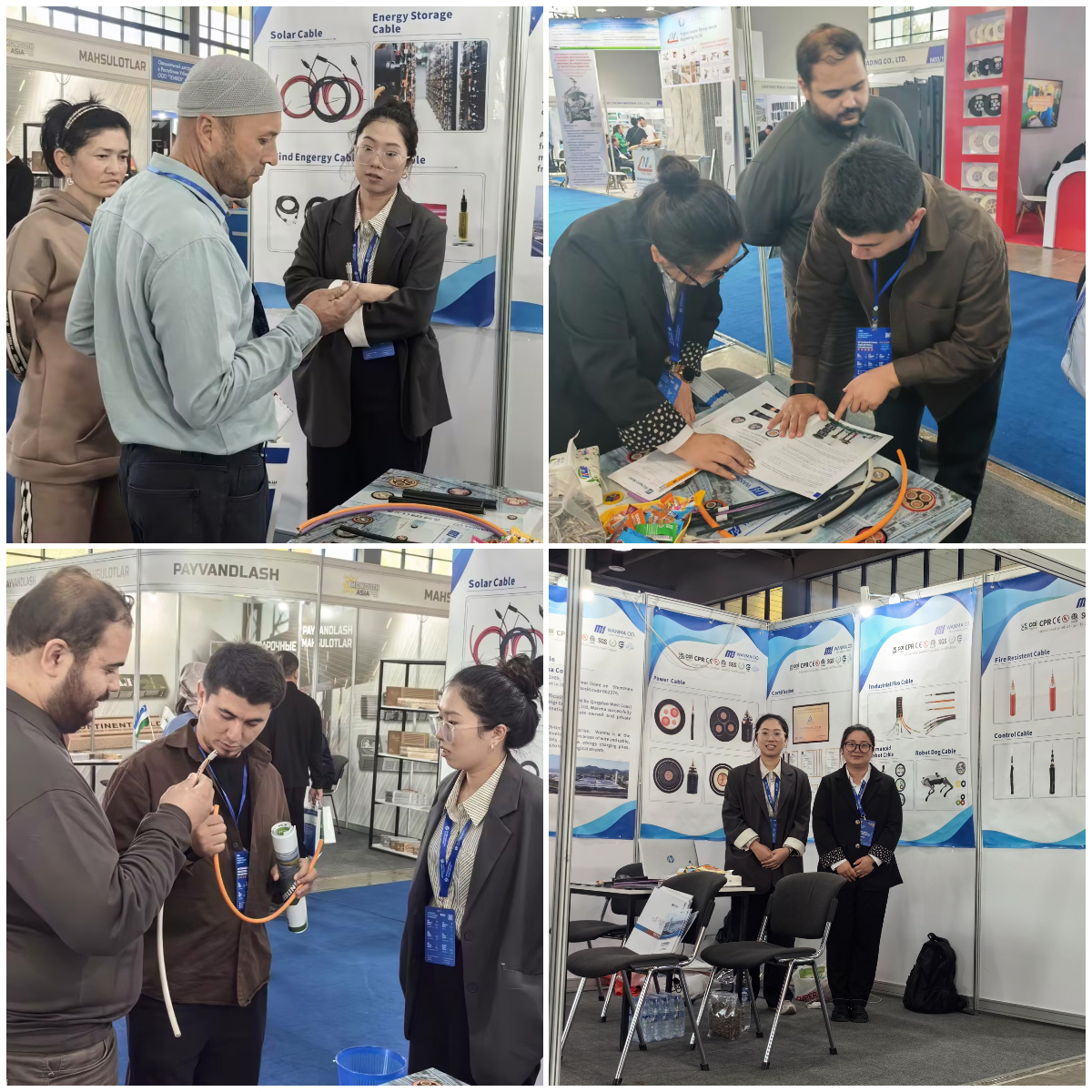 同社のブースは、相談や協力の機会を求める来場者が途切れることなく、多くの人で賑わった。活気に満ちた雰囲気の中、イベント全体を通して新たな協力協定が最終決定されるのが見られました。同社の海外ビジネスチームと技術チームは、訪問した顧客と綿密な議論を交わしました。対面での専門的なプレゼンテーションとインタラクティブなコミュニケーションを通じて、Wanma 製品の性能上の利点と差別化された技術革新を紹介しただけでなく、クライアントのカスタマイズされた要件にも正確に応えました。イベント中、多くのクライアントがゴム被覆鉱山ケーブルに対する強い関心と協力の意向を表明し、チャネルを継続的に拡大し、中央アジア市場のさらなる発展に向けたリソースを蓄積しました。