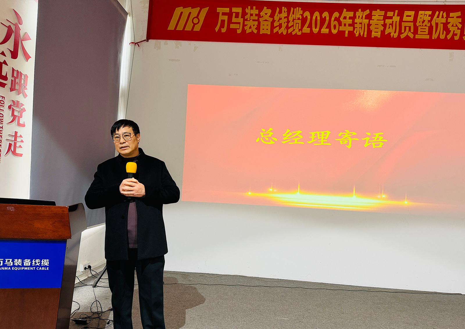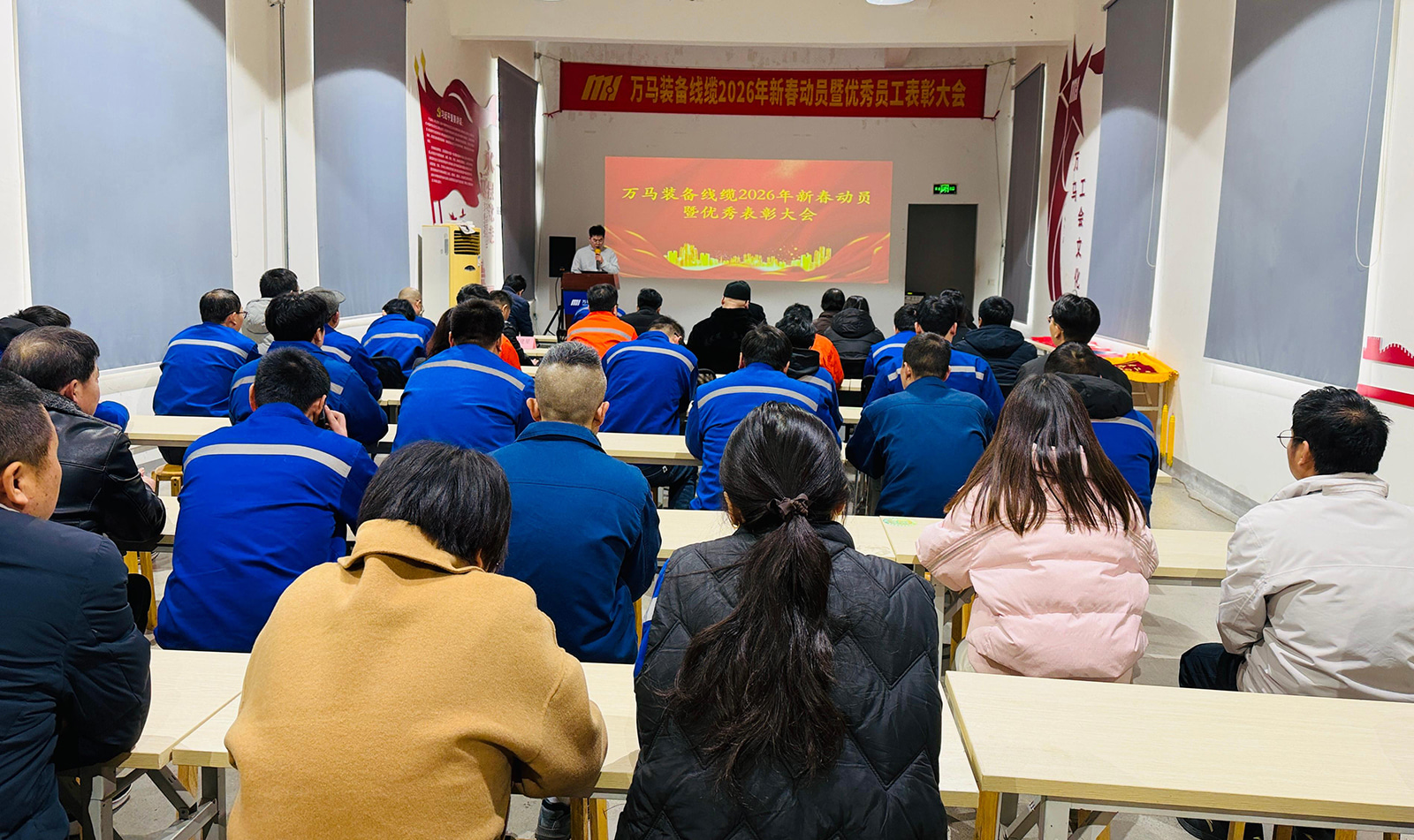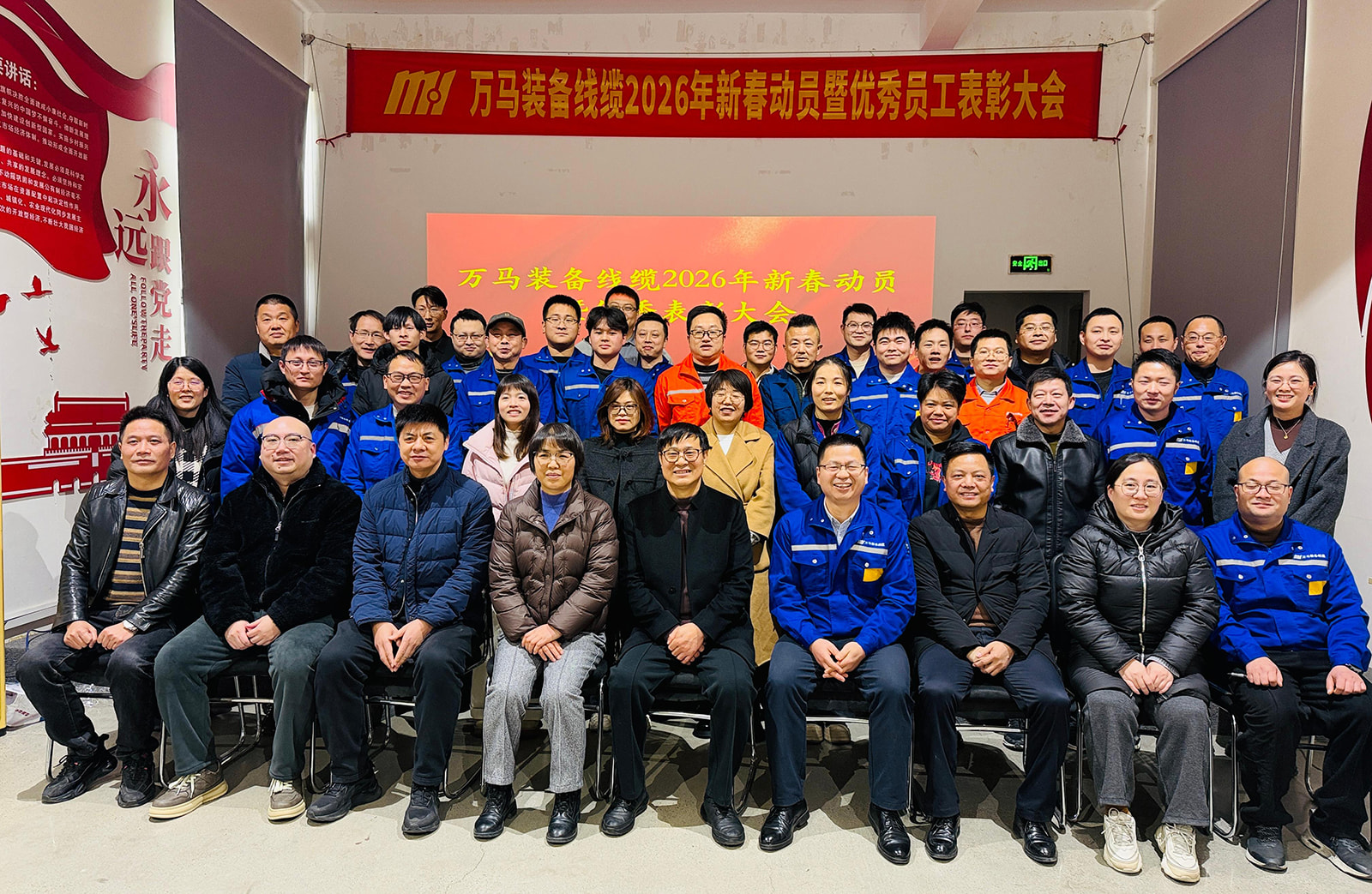 本来の志を実現するために努力し、才能が私たちの基盤を築きます。優秀な従業員とチームを称え、ロールモデルの力を活用するために、Wanma Equipment & Cable は、2026 年 1 月 28 日午後、2025 年度年次優秀表彰式を無事に開催しました。このイベントは、2025 年を通じて並外れたパフォーマンスを発揮した従業員とチームを讃えました。会社のリーダー、部門責任者、表彰された個人やチームを含む 50 名を超える出席者が集まり、過去の業績を振り返り、輝かしい未来を思い描きました。